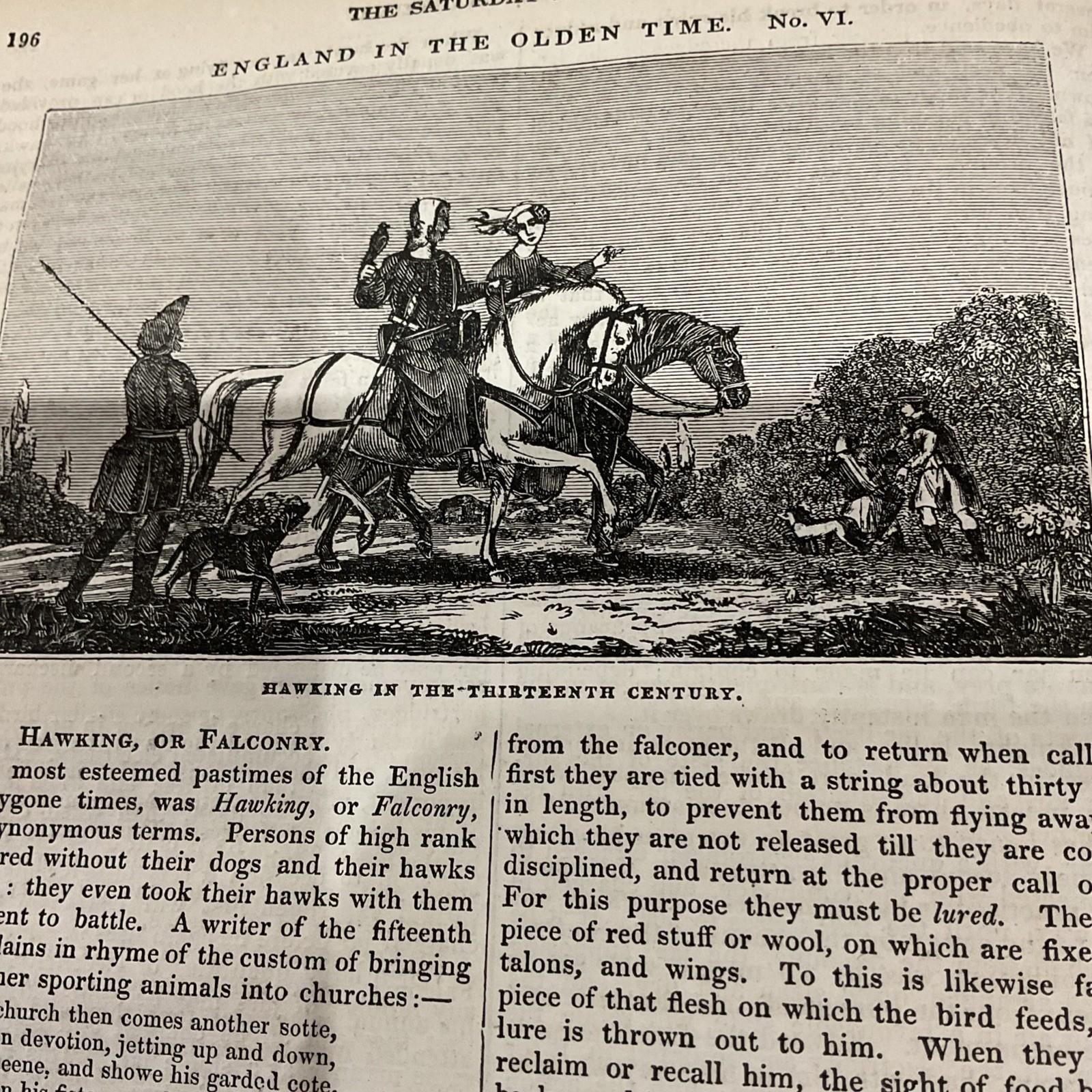 Antique Print 1839 - HAWKING OR FALCONRY + article