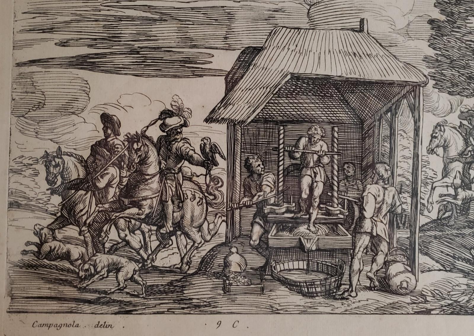 Antique print related to falconry. The artist is either Michael Corneille (1601-64) or his son Micha
