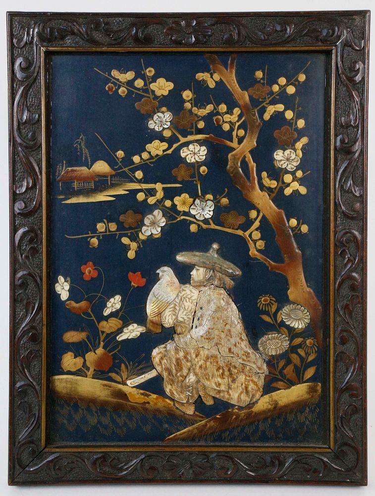 Asian Carved and Painted Falconer Plaque, late 19th Century