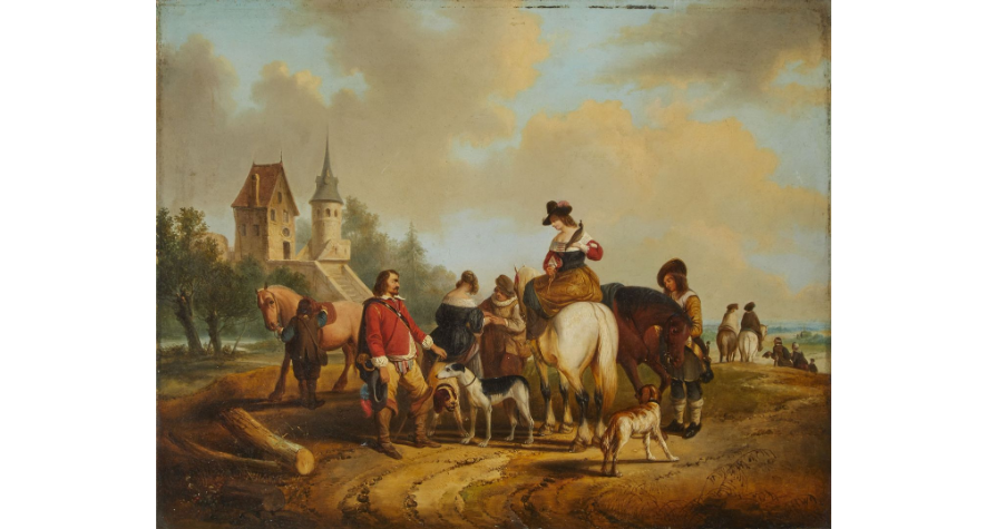 Belgian artist Joseph JACOPS (1806-1856) Departure for falconry