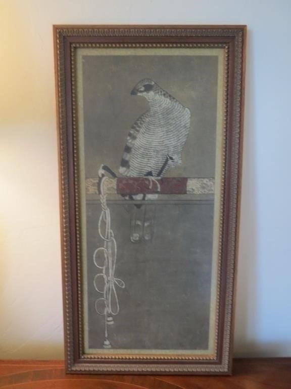 26”x13.5” Takagari Japanese Falconry Art Painting “White Goshawk” Mounted Scroll