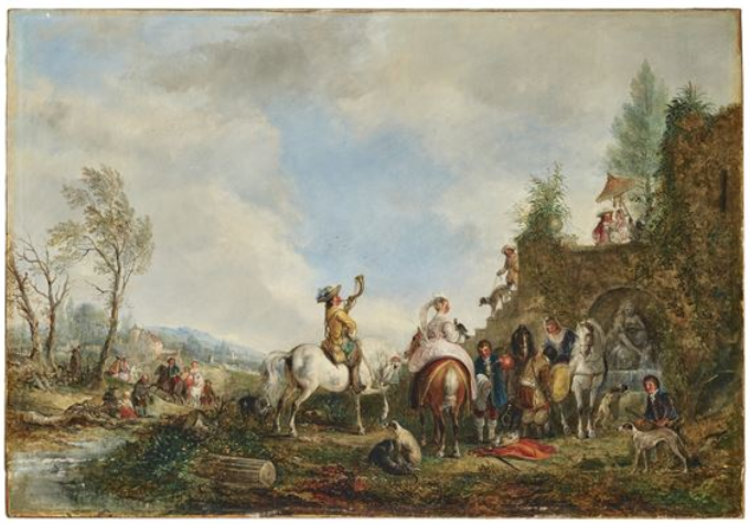 A Hawking Party by Dutch artist Dirk Maes (1659–1717)