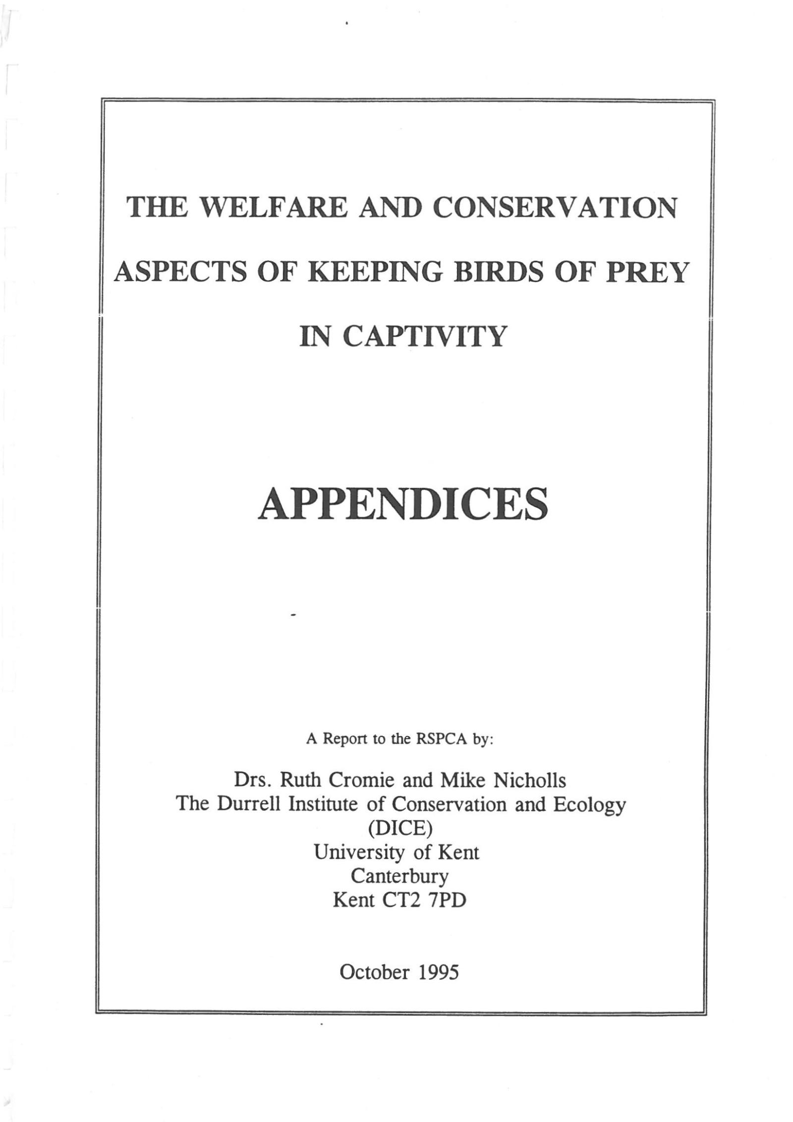 The Welfare and Conservation Aspects of Keeping Birds of Prey in Captivity - APPENDICES - Part 1