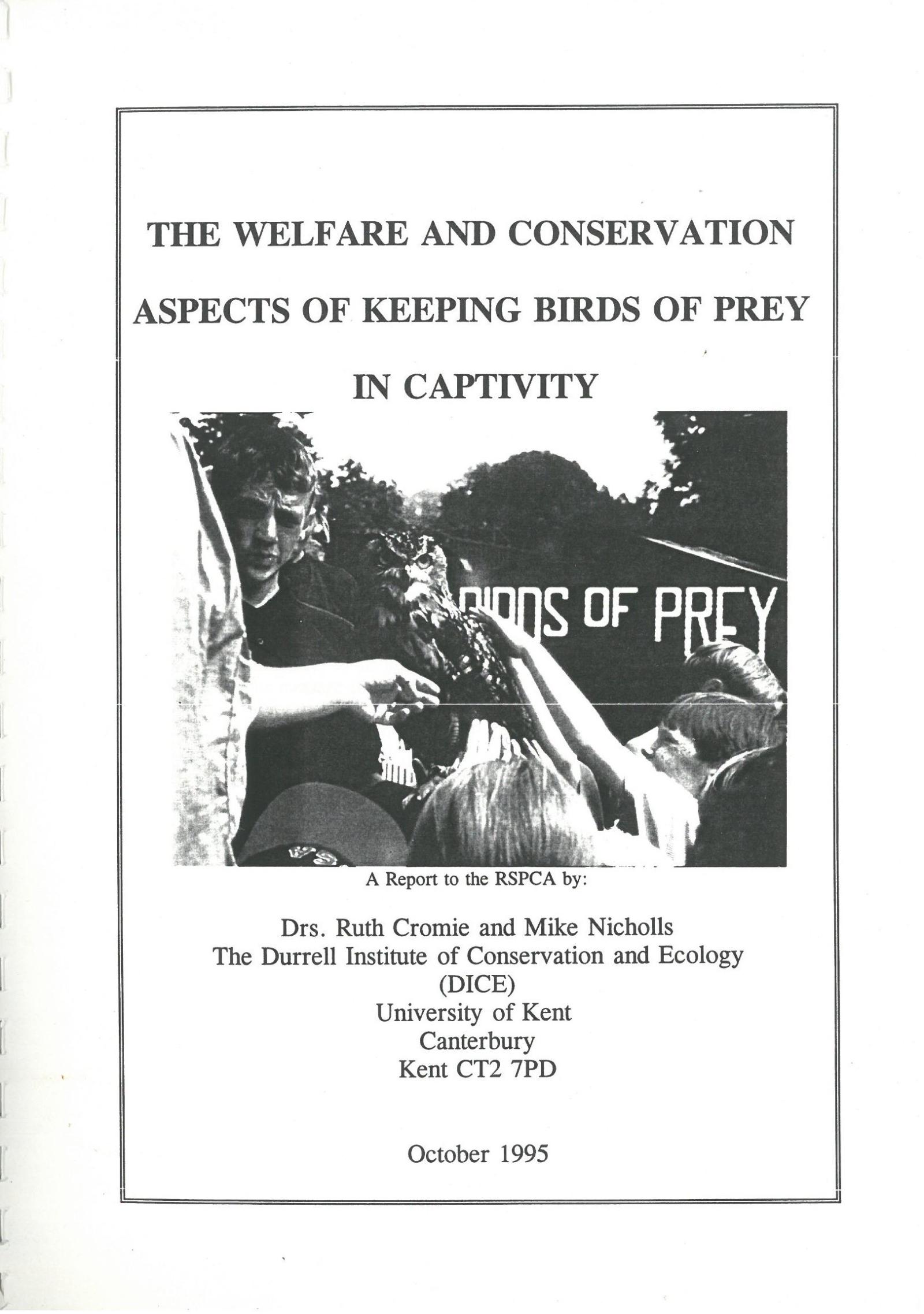 The Welfare and Conservation Aspects of Keeping Birds of Prey in Captivity - Part 1 (Chapters 1-4) - A Report to the RSPCA