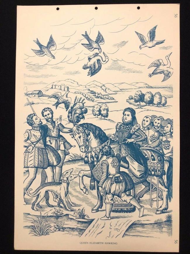 Vintage 1930s Poster Chart School Print QUEEN ELIZABETH HAWKING - No 56