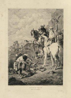 A scene from everyday life. Falconry by Monziès, Louis (1849–after 1889); Fromentin, Eugène (1820–1876) (Inventor)