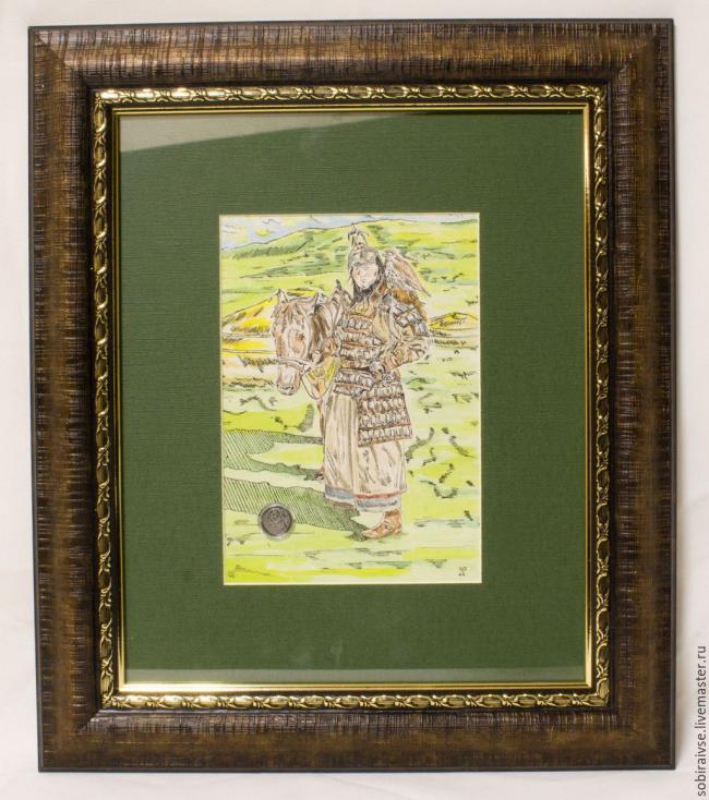 Collage Falconer, decorated by silver coin Sultain Fair Dzha, Ufa, Bashkiria