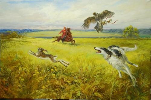 Daybreak and a hawk by Russian artist Denis Vladimirovich Nikonov born in 1975