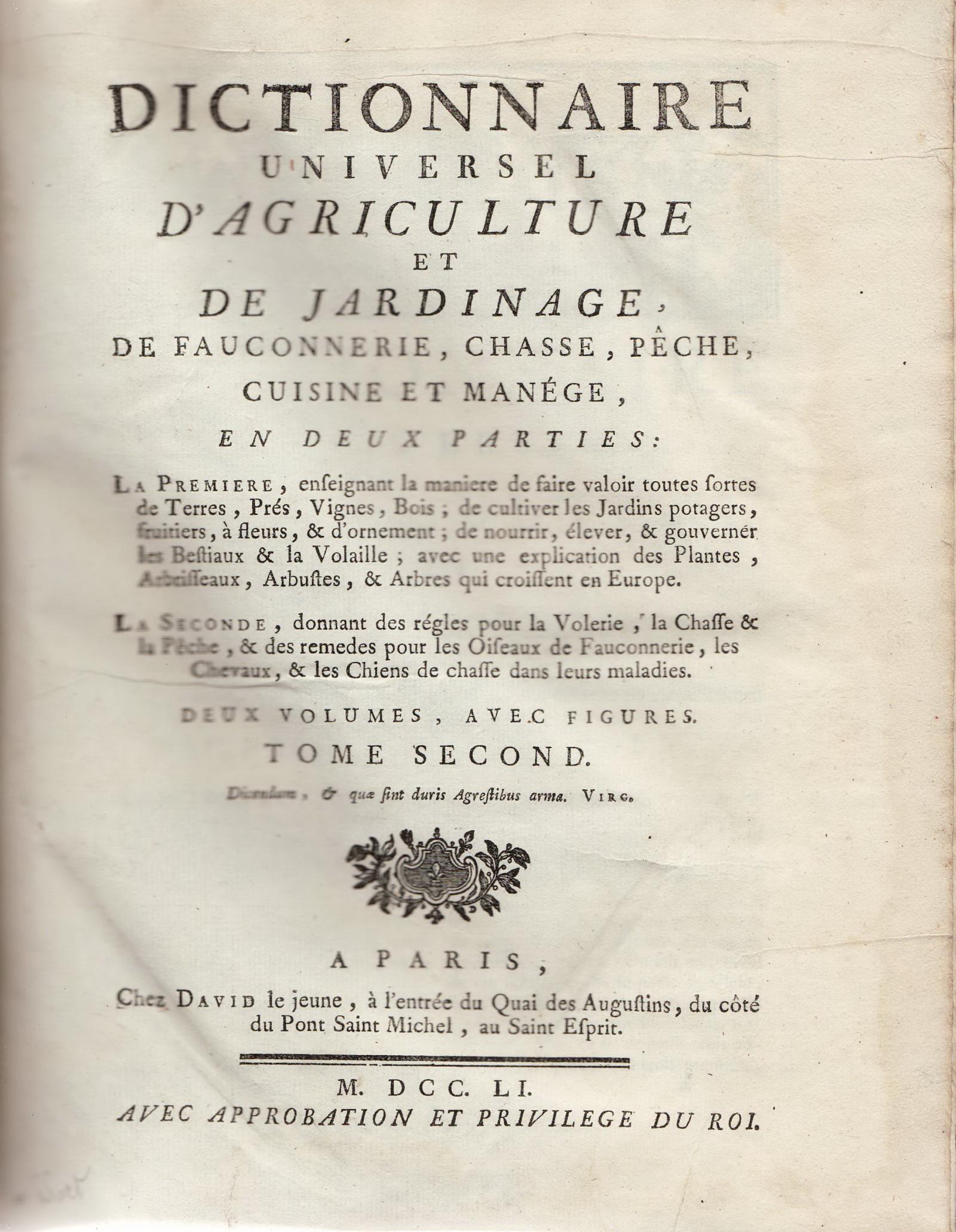 Dictionnaire universel d'agriculture et de jardinage, de fauconnerie, chasse, pêche, cuisine et manè