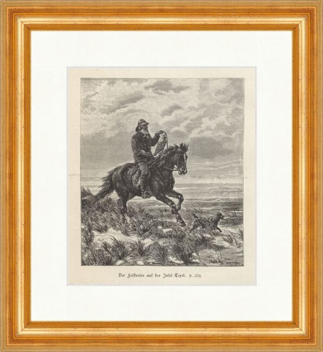 Ein Falkonier auf der Insel Texel Holland Falkenjagd Holzstich Jagdzeitung 0125