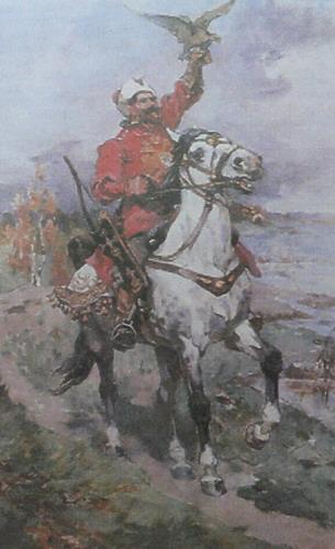 Falconer by Ukrainian artist Nikolai Semenovich Samokish (1860-1944)