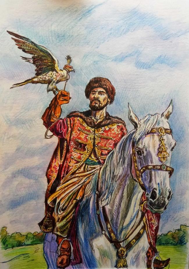 Falconer by Russian artist Vladimir Andreevich Below (1923-1997) made in 1972