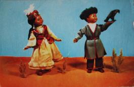 Falconers (Dolls in Kazakh national costumes) - postcard of 1967