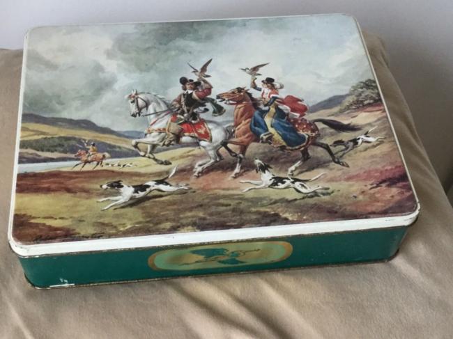 Falconeria Hawking da collezione vintage Biscuit scena TIN