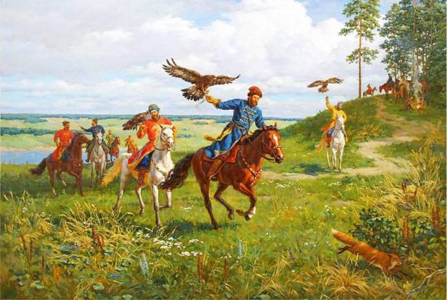 Falconry by Vyacheslav Mikhailovich Nazaruk born in 1941