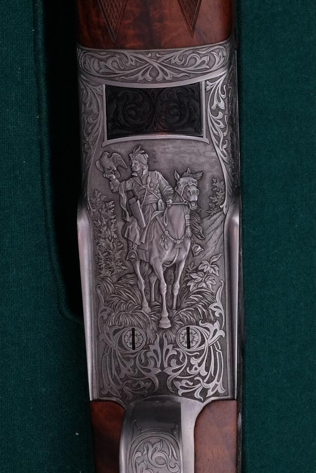 Falconry scene on hunting gun MTs-109-12 "Russian hunting" by E.V.Generalov