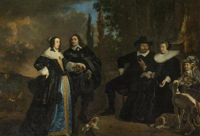 Family portrait (full-length): possibly Willem Viss and Eva Bishop, their daughter Laurencia with her husband Adrian Prince and their son Willem