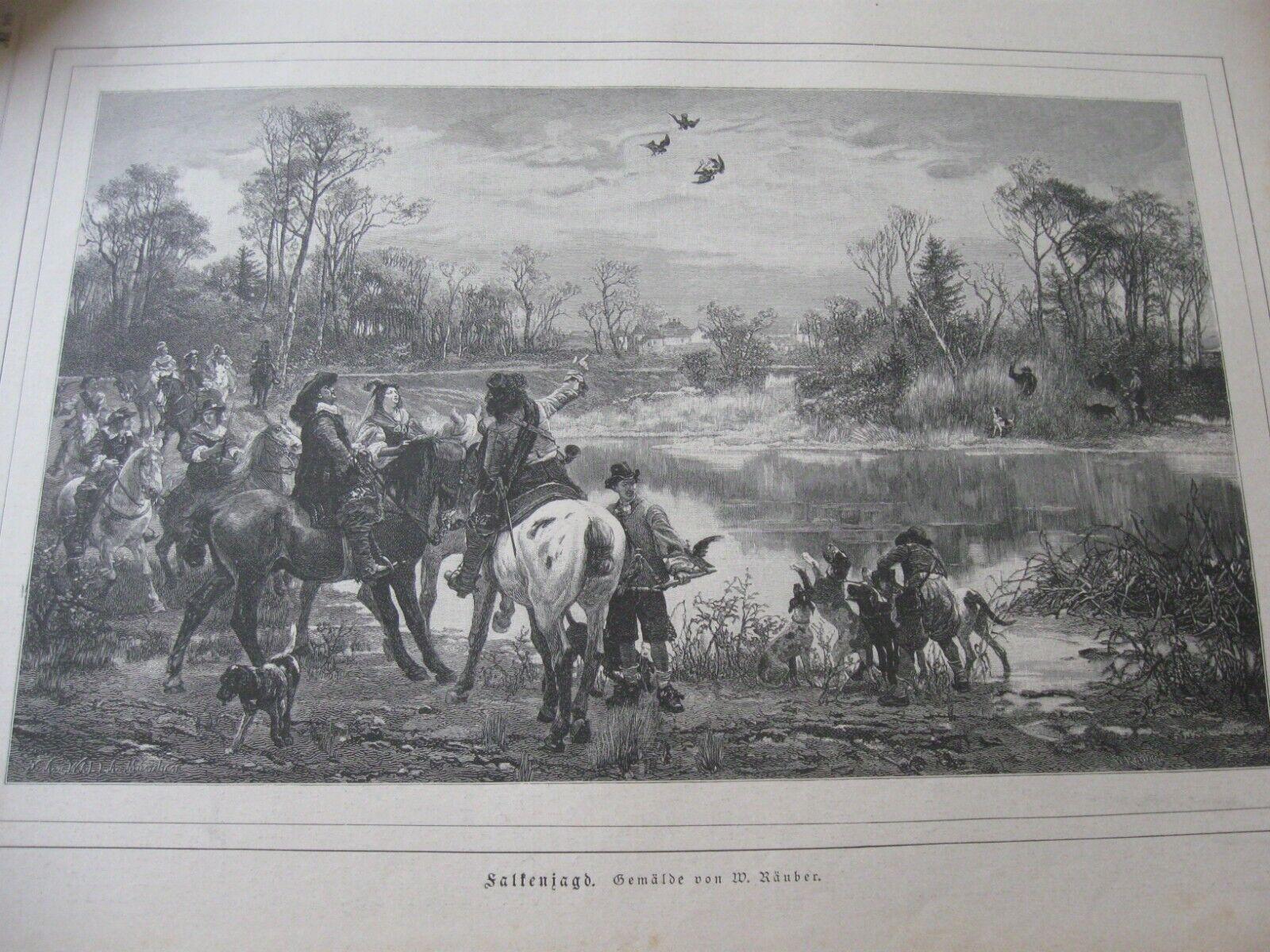 1889 Art Print ENGRAVING - FALCONRY Falcon Hawk HAWKING Hunt Hunting BIRDS
