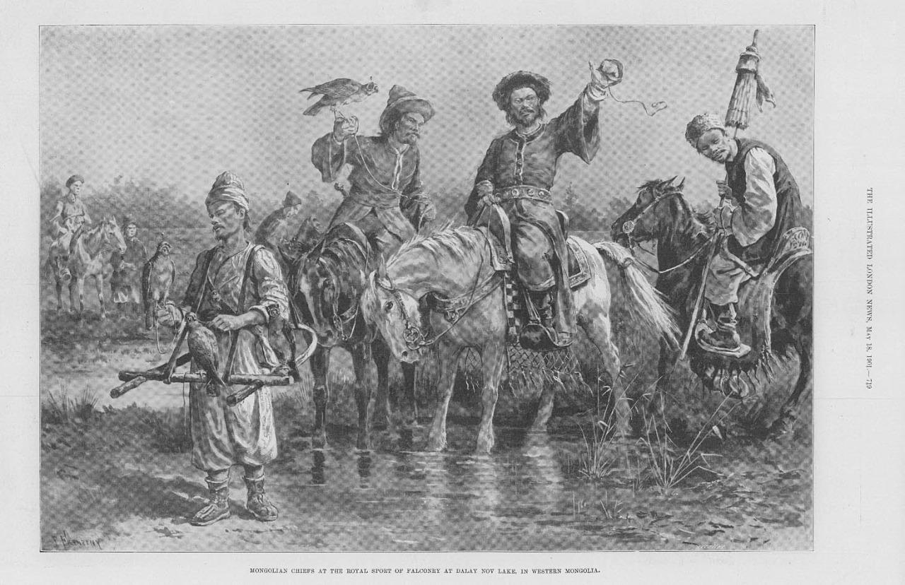 1901 Antique Print - FAR EAST Mongolia Dalay Nov Lake Sport Falconry Horses(188)
