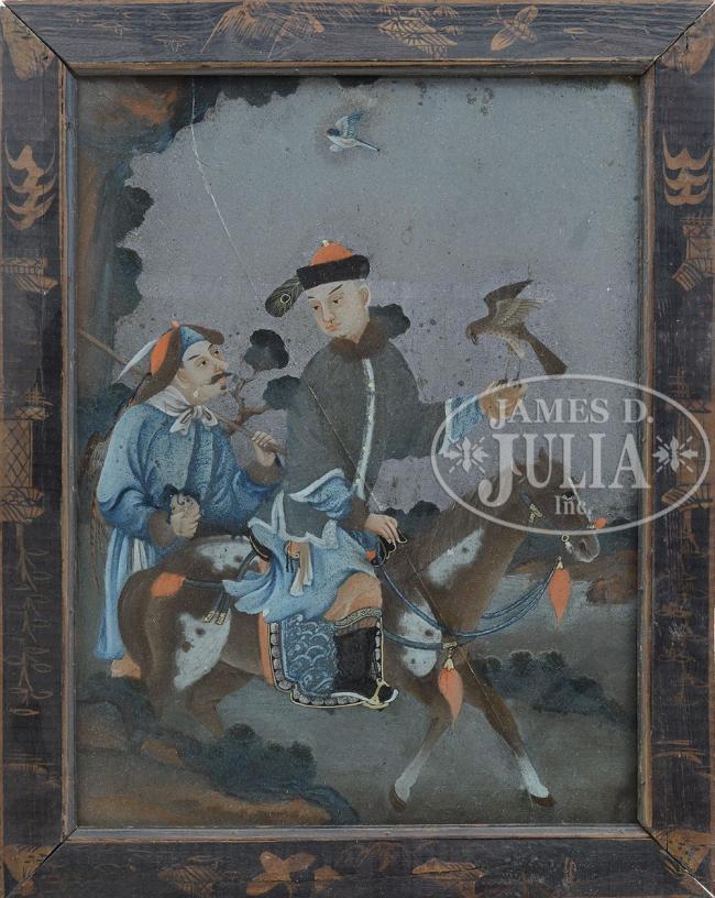 19th century, China. Depicting a Manchurian falconer and his attendant