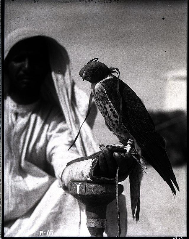 Indian Miniature Falcon Painting Gouache Paper Mughal Style Persian Calligraphy
