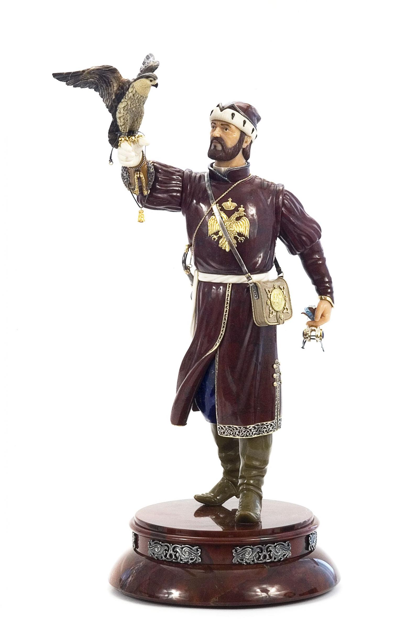 Interior composition "Tsar's Hunt". Falconer. Jewellery House Moiseykin founded in 1993.