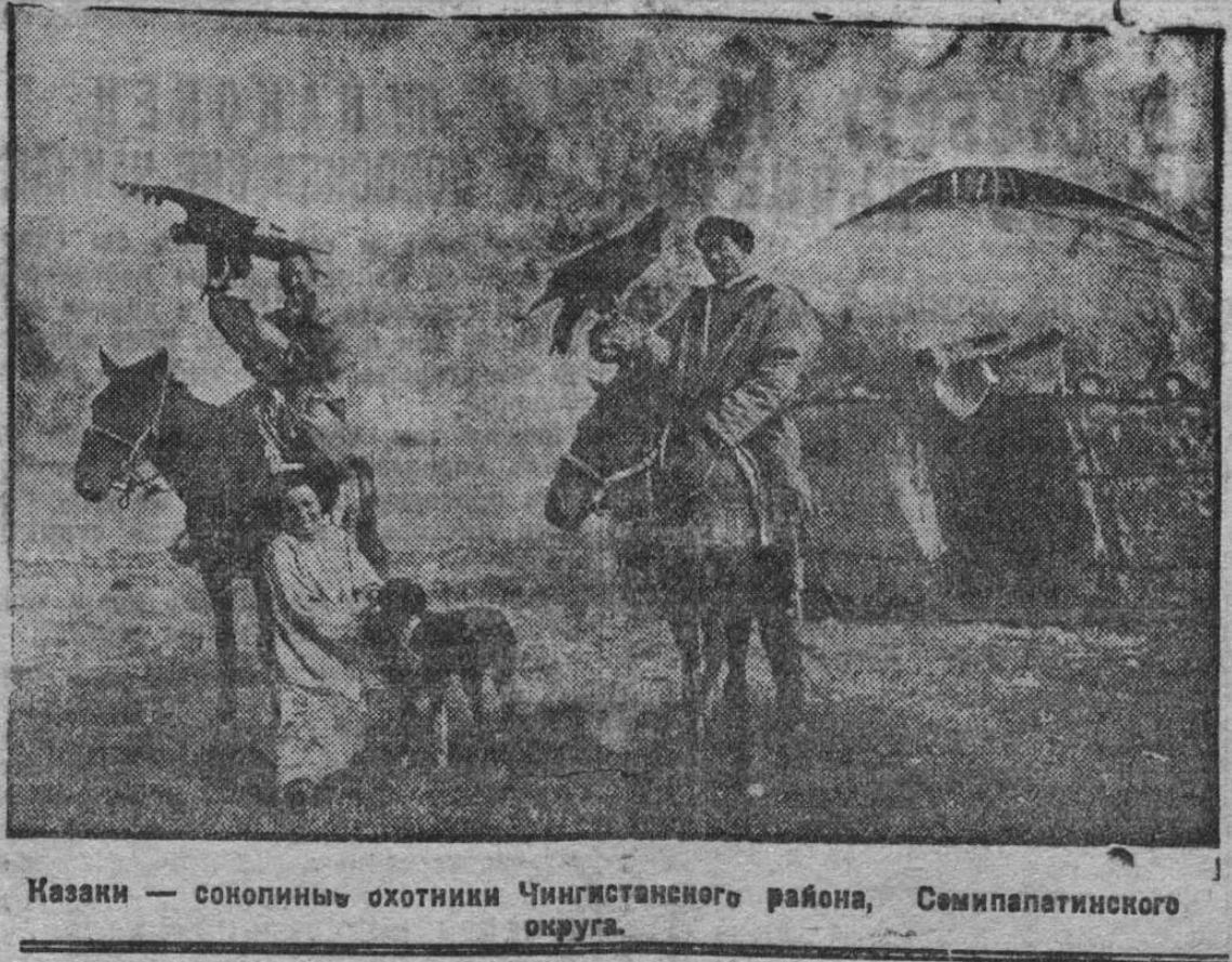 Kazakhi falconers in the Chingistanskiy district of Semipalatinsk area, Kazakhstan in 1928