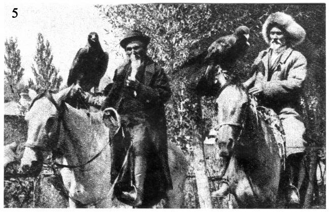 Kazakhi hunters with the Golden Eagle in W of Mongolia. Expedition of 1938.