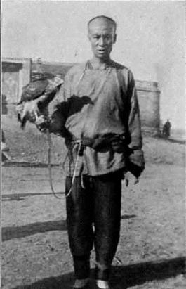 A Chinese hunter with Falcon -Photography by C.G. Mannerheim, photo of 1906 - 1908