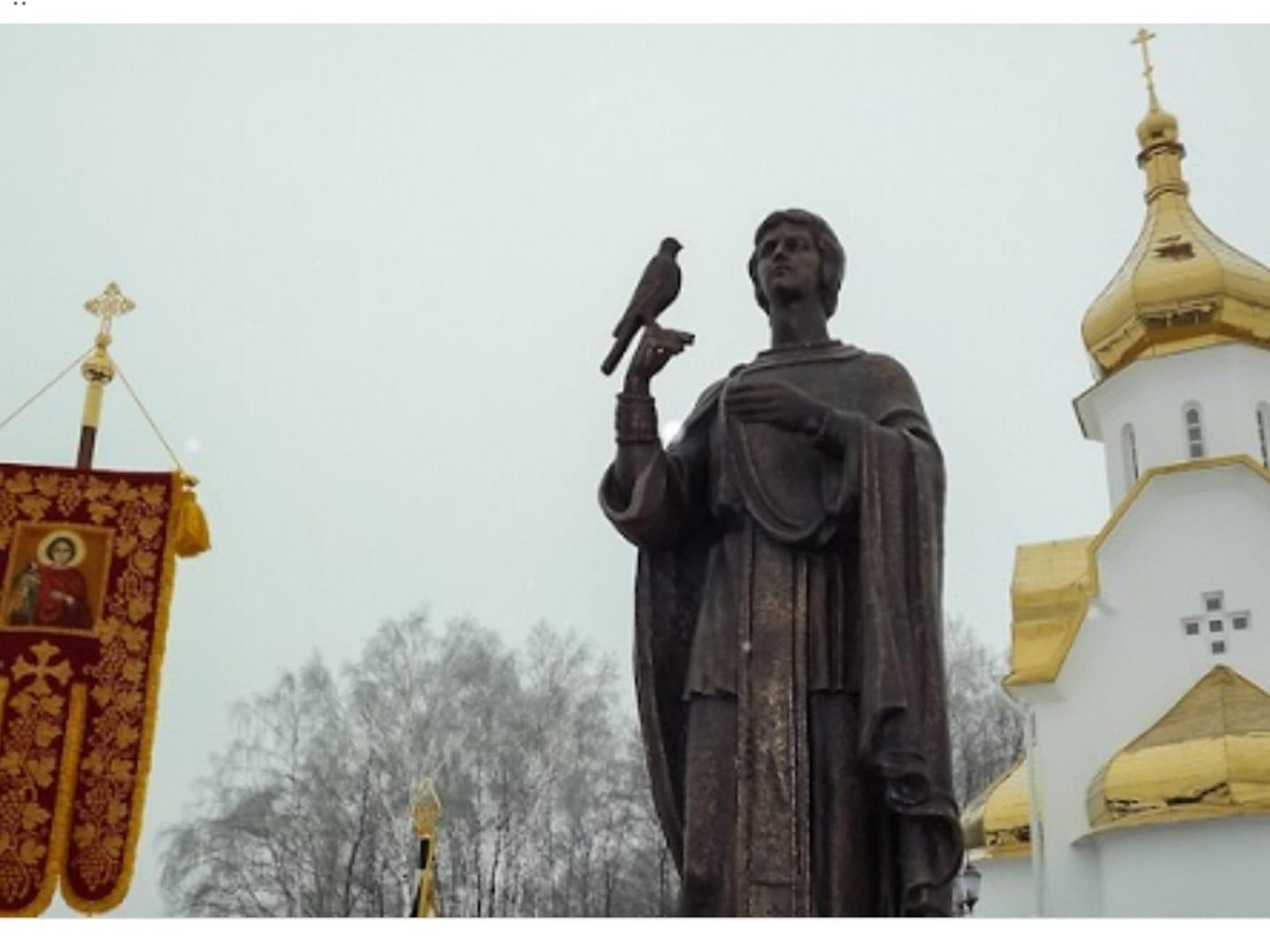 Monument to St-Triphon (falconer) in National Horse Park near Moscow