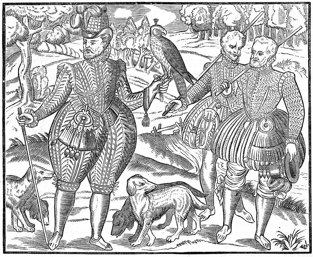 Hawking and bird hunting with nets; two hawkers on horseback by Jost Amman