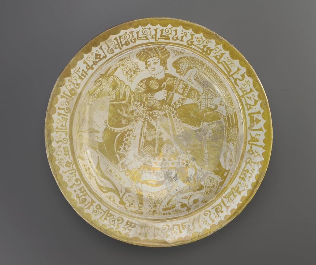 Plate depicting falcon hunting scene, maiolica, Nevers manufacture, Burgundy, France, 17th century