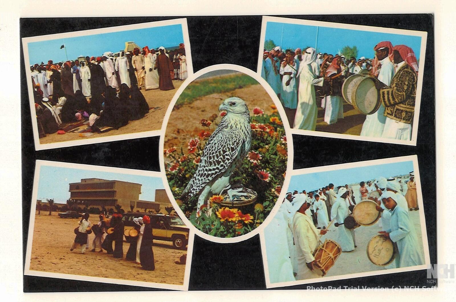 Qatar Rare Old Picture Postcard Falcon Garden Arab Culture Dance Costume History
