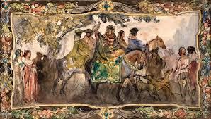 Saxon hawking. This engraving shows a Saxon nobleman and his falconer, with their hawks