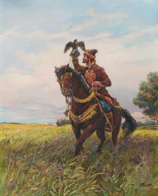 Falconers - picture by Russian Artist Stepan Fedorovich Kolesnikoff (1879-1955)