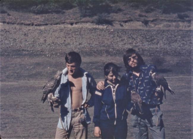 Three falconers at falconers' meeting in October 1988 In Tbilisi, Georgia