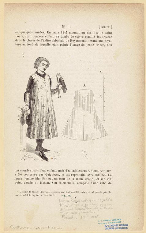Tunic line with ermine, a late type; after a painting of a son of Saint Louis, formely in Royaumont Abbey Church, French, 13th cent