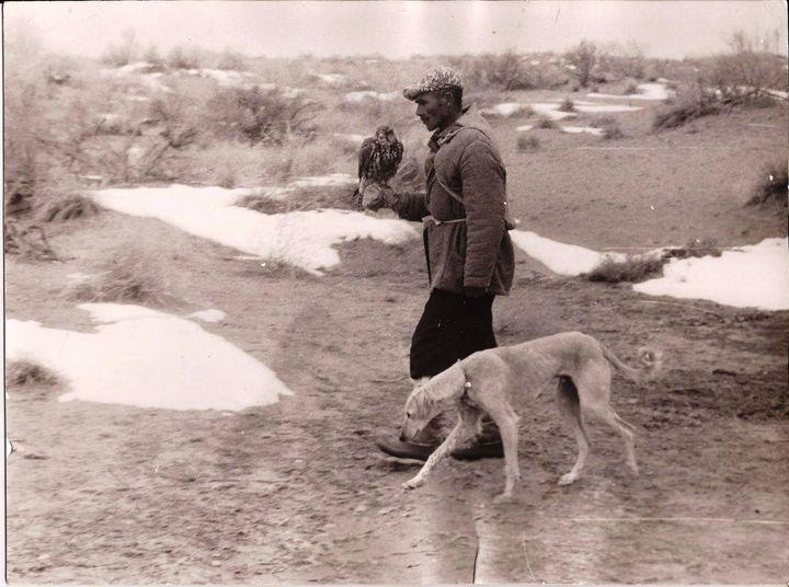 Turkmenian falconer with Saker and Tazy - public by Saiat Saparov
