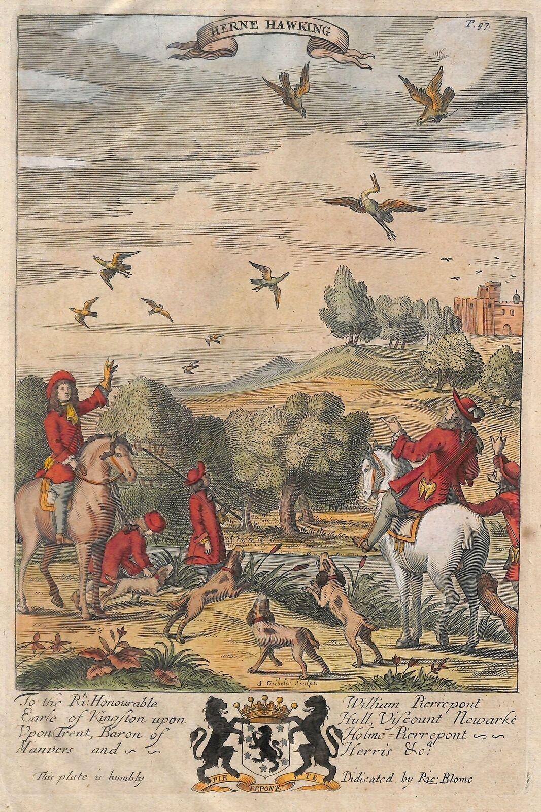 Adlerjagd Falkenjagd JAGD Kupferstich 1686 - sehr schön koloriertes Original!